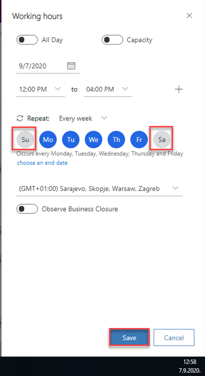 Now, Let’s say that Tim will work from 12:00 PM to 04:00 PM every day. To change his calendar (e.g. Working Hours), I will follow next steps: