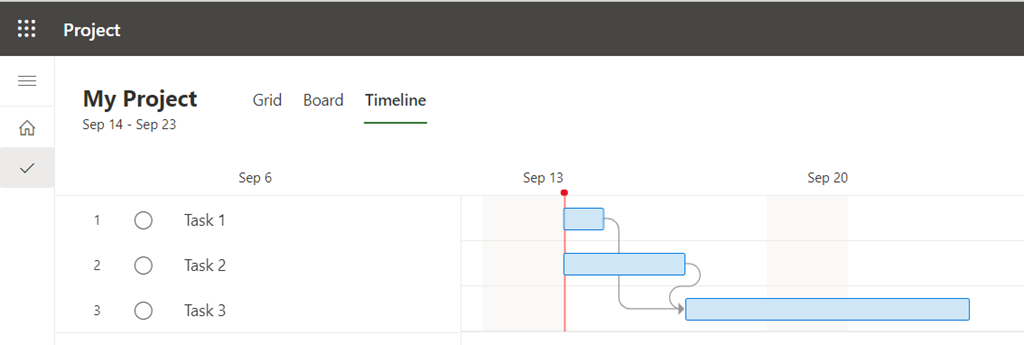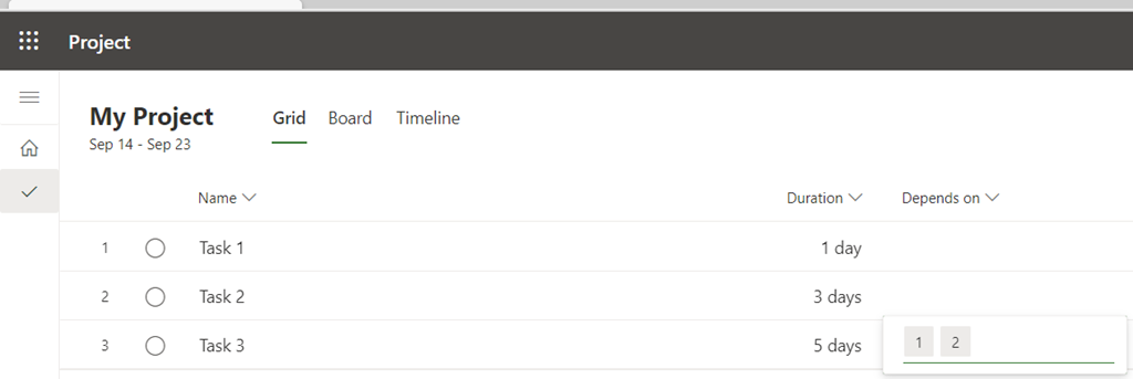 As you can see, Task 2 is no longer Driving Tasks for Task 3. Why is that? Because when Task has been started (as in my example, Task 3), it will not be moved even if, for example, Task 2 has extended Duration. Let me show you that. I will put 7 days in Duration field for Task 2, and I will get:
