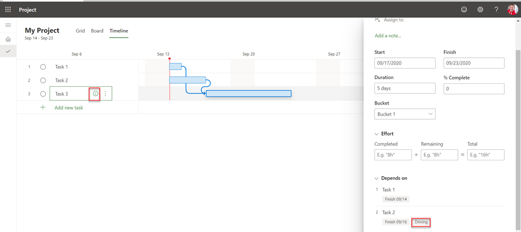 in one of my previous post I have explained Driving Tasks in Microsoft Project for the Web. Now I will show you how this effect Task which has % complete greater than zero.