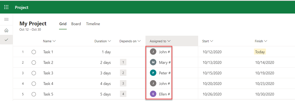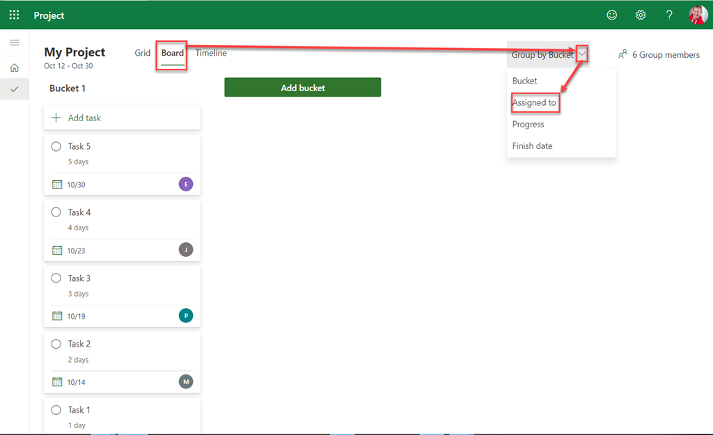 OK! Now I see all John’s Tasks. But what if I want to see all Tasks by Resources (something like Resource Usage View in Project PRO)? To get that I will switch to Board View: