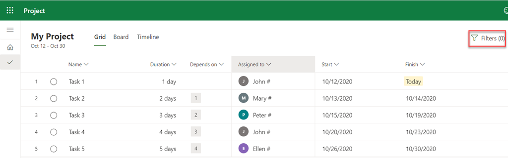 Now let’s say that I want to see to which Tasks is John assigned. To do that I will follow next steps:
