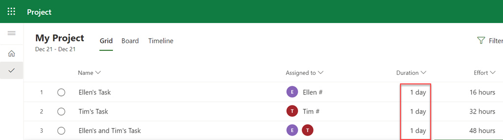 To conclude, you can get confused when Duration and effort is combined. The best expected result will be if you enter Duration, and Let Project for the web to calculate effort!