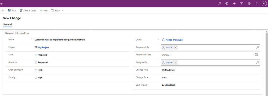 Change Type: It can be: Scope, Schedule, Cost, None and it represent to which Project component will Change has affect