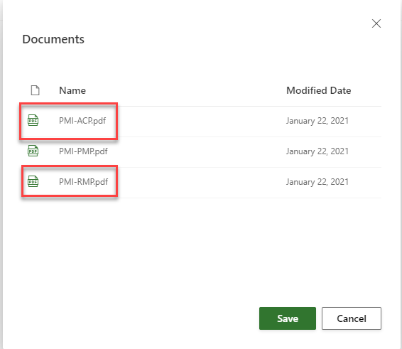 If I want to attach a file From team files I will get: