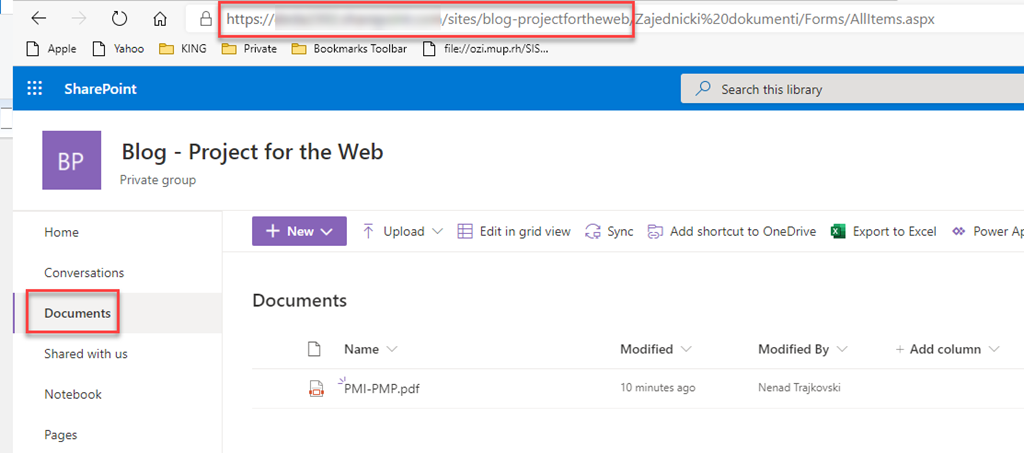As you can see file attached to the Task is in SharePoint site created for the Group. So, the answer for the question above is: “Until I don’t have a group assigned to the Project, I cannot attach a file, because Project doesn’t now where to place it!”.