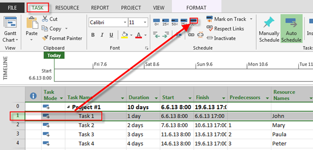 Let’s say that we want to have a Task with 7 days duration. Of course I’ll use MS PROECT 2013.