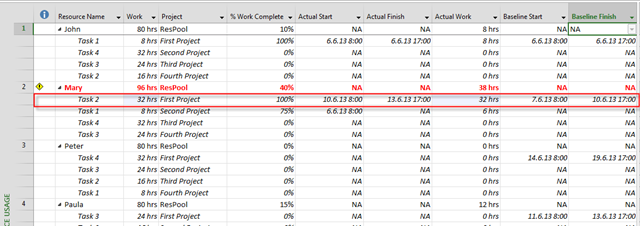 And finally, if you have a Resource pool, for example, and you Assign Mary to work on 5 Projects with 20% assignment on each Project, with Exception for Saturday 06.07.2013, and Sunday 07.07.2013, she will works on every project during that weekend!