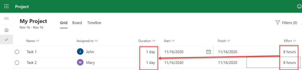 To conclude, you can get confused when Duration and effort is combined. The best expected result will be if you enter Duration, and Let Project for the web to calculate effort!