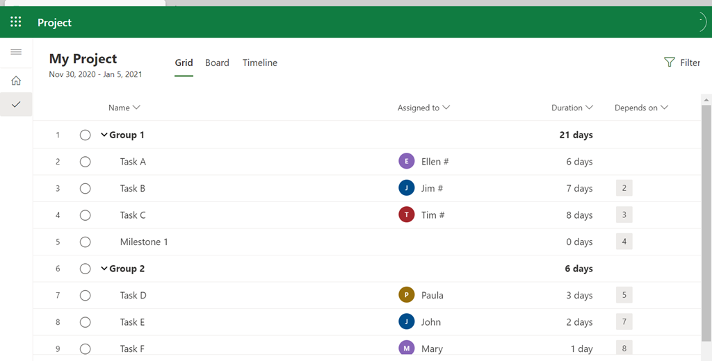 WOW! Duration for every Task is 1 day! Do not forget, that in Project for the Web, Task Type is Fixed Duration. and cannot be changed!