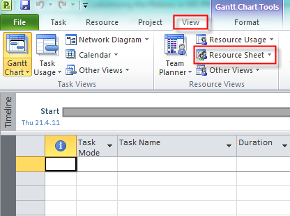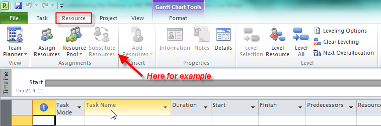 In MS Project 2010 you can choose between two types of scheduling: Manually or Automatic schedule. If you choose Manually you will have the whole control over the scheduling and you will not get the whole power of MS Project 2010. For my examples I’ve chosen Automatic mode and it is shown on picture below: